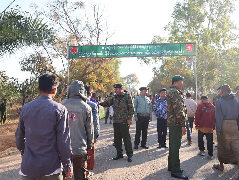 ပြည်သူ့စစ်မှုထမ်းသင်တန်းအမှတ်စဉ် (၂၂) သို့ တက်ရောက်ကြမည့် ရှမ်းပြည်နယ်အတွင်းရှိ နိုင်ငံ့သားကောင်းရတနာများအား ကြိုဆိုပွဲကို ယနေ့နံနက်ပိုင်းတွင် ကျိုင်းတုံမြို့ရှိ နယ်မြေခံသင်တန်းကျောင်း၌ပြုလုပ်ရာ တြိဂံဒေသတိုင်းစစ်ဌာနချုပ် ဒုတိယတိုင်းမှူး ဗိုလ်မှူးချုပ် ကျော်နိုင်စိုးနှင့် တာဝန်ရှိသူများ၊ အရာရှိ၊ စစ်သည်၊ မိသားစုဝင်များ၊ ပြည်နယ်၊ ခရိုင်၊ မြို့နယ်အဆင့် ဌာနဆိုင်ရာတာဝန်ရှိသူများ၊ မြန်မာနိုင်ငံရဲတပ်ဖွဲ့ဝင်များ၊ စစ်မှုထမ်းဟောင်းအဖွဲ့ဝင်များနှင့် တိုင်းရင်းသားယဉ်ကျေးမှုအဖွဲ့များ တက်ရောက်ကြသည်။