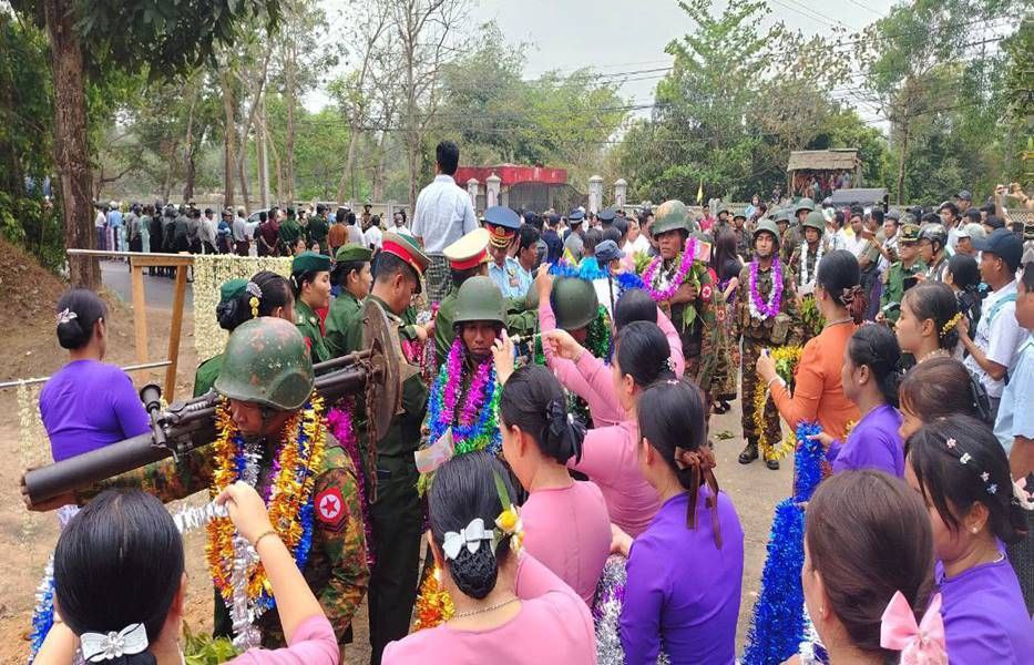 စစ်ဆင်ရေးတာဝန်များကို စွမ်းစွမ်းတမံထမ်းဆောင်ခဲ့ပြီး ရွပ်ရွပ်ချွံချွံတိုက်ပွဲဝင်ခဲ့သော အောင်ပွဲအလီလီရ ရှေ့တန်းပြန်နိုင်ငံ့သားကောင်း တပ်မတော်သားများအား ဝမ်းမြောက်စွာ သောင်းသောင်းဖြဖြ ဂုဏ်ပြုကြိုဆို