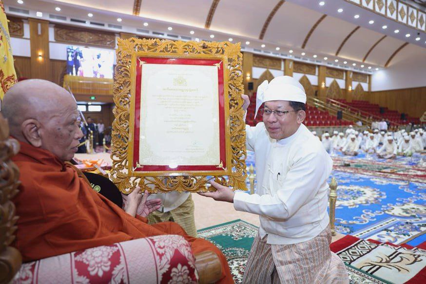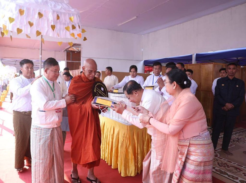 သာသနာတော်ဆိုင်ရာဘွဲ့တံဆိပ်တော်များ ဆက်ကပ်ပူဇော်ခြင်းမဟာမင်္ဂလာအခမ်းအနားနှင့် ဆွမ်းဆန်စိမ်းလောင်းလှူပွဲအခမ်းအနားကို