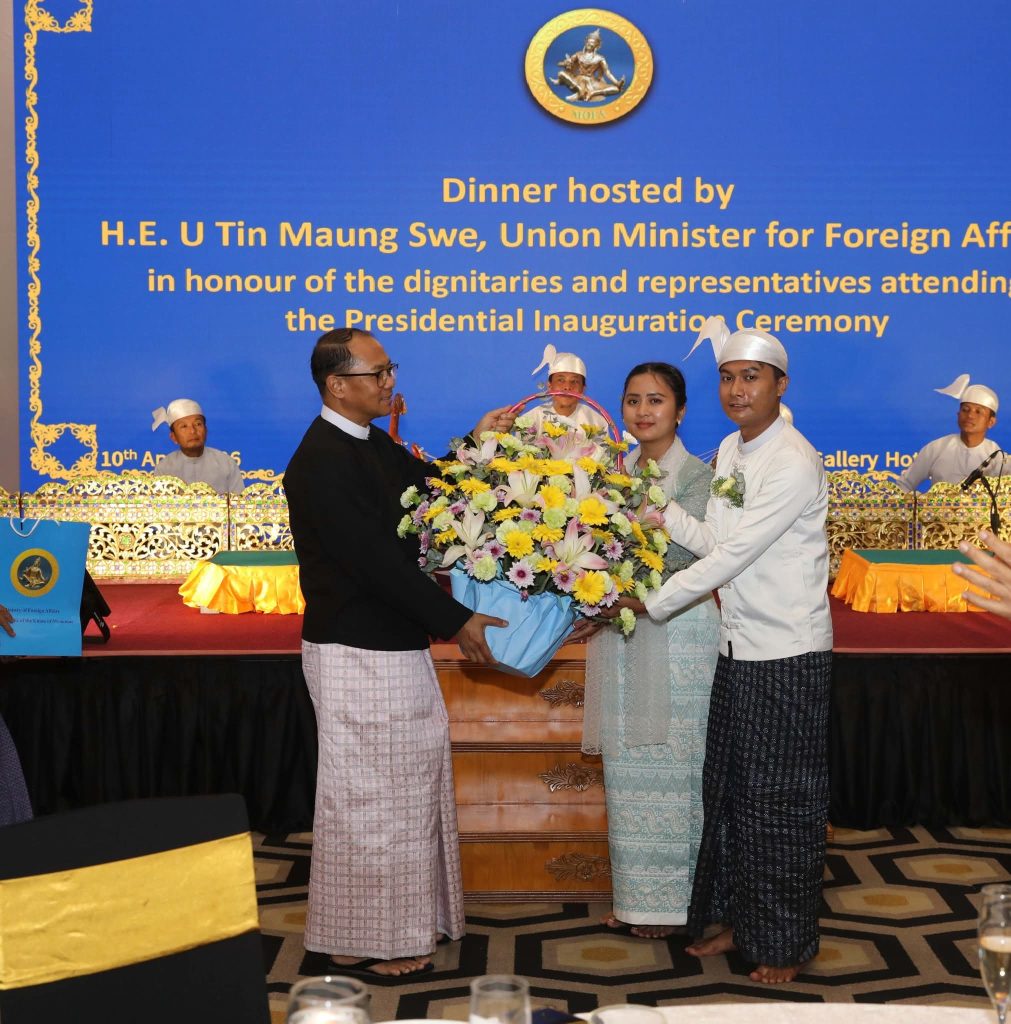 ပြည်ထောင်စုသမ္မတ မြန်မာနိုင်ငံတော်၊ သမ္မတအသစ် ကတိသစ္စာပြုခြင်းနှင့် စတင်တာဝန်ယူခြင်း အခမ်းအနားသို့ တက်ရောက်လာကြသည့် နိုင်ငံအသီးသီးမှ အစိုးရများ၏ အဆင့်မြင့်ကိုယ်စားလှယ်များ၊ ဧည့်သည်တော်များနှင့် သံအမတ်ကြီးများအား နိုင်ငံခြားရေးဝန်ကြီးဌာန၊ ပြည်ထောင်စုဝန်ကြီး ဦးတင်မောင်ဆွေက ၂၀၂၆ ခုနှစ်၊ ဧပြီလ ၁၀ ရက် (သောကြာနေ့) (၂၀၀၀) နာရီအချိန်တွင် နေပြည်တော်ရှိ M Gallery ဟိုတယ်၌ ညစာစားပွဲဖြင့် တည်ခင်းဧည့်ခံခဲ့သည်။